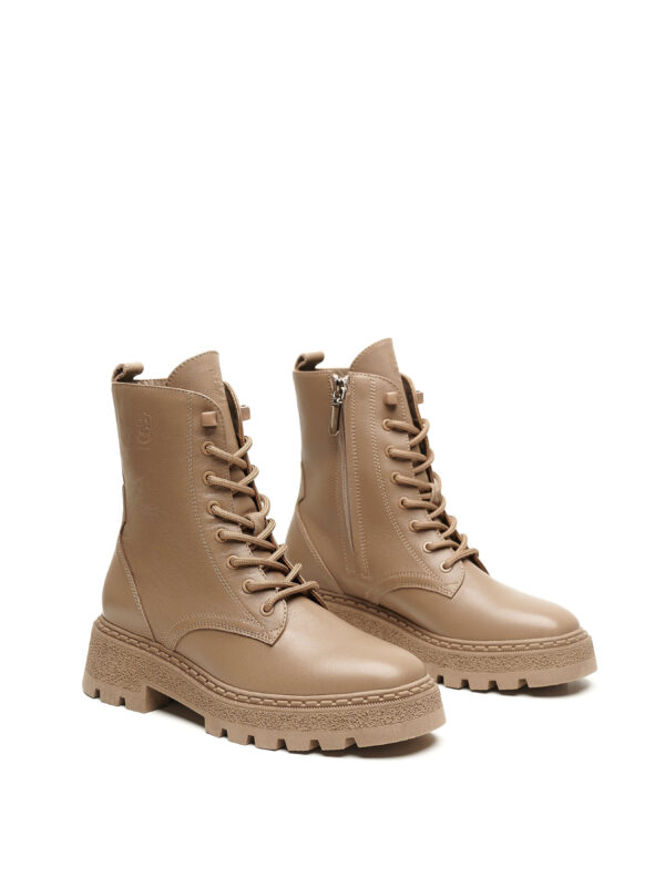 Присмотритесь к этой стильной модели! ALEX BELL, как всегда, создал для вас уникальный и качественный продукт. Матовая поверхность из натуральной кожи ботинок придает им внешнюю привлекательность и шарм, в них вы точно не останетесь не замеченной. Нежный цвет беж позволяет сочетать их с одеждой любого стиля и расцветки. Ботинки имеют удобный замочек и шнуровку. По толстой подошве выполнен стильный дизайн. Сама подошва выполнена из современных материалов – легкая и износостойкая. Мы уверены, эта обувь будет радовать вас не один сезон!