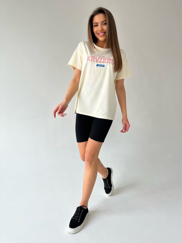 Бежевая свободная футболка с нашивками. Состав: 50% хлопок, 35% вискоза, 15% полиэстер. Материал: Вискоза. Полуобхват: Грудь: M (55), L (56), Длина изделия – 63, Рукав – 12, Ткань: Высокой эластичности.