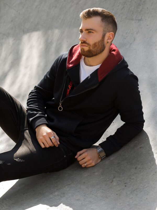 Утепленная флисом трикотажная толстовка декорирована укороченной молнией и принтованной потайной вставкой у горловины. Толстовка с капюшоном и контрастной вставкой. Модель прямого кроя с карманом и длинными рукавами оснащена манжетами. Материал: Трикотаж на флисе
