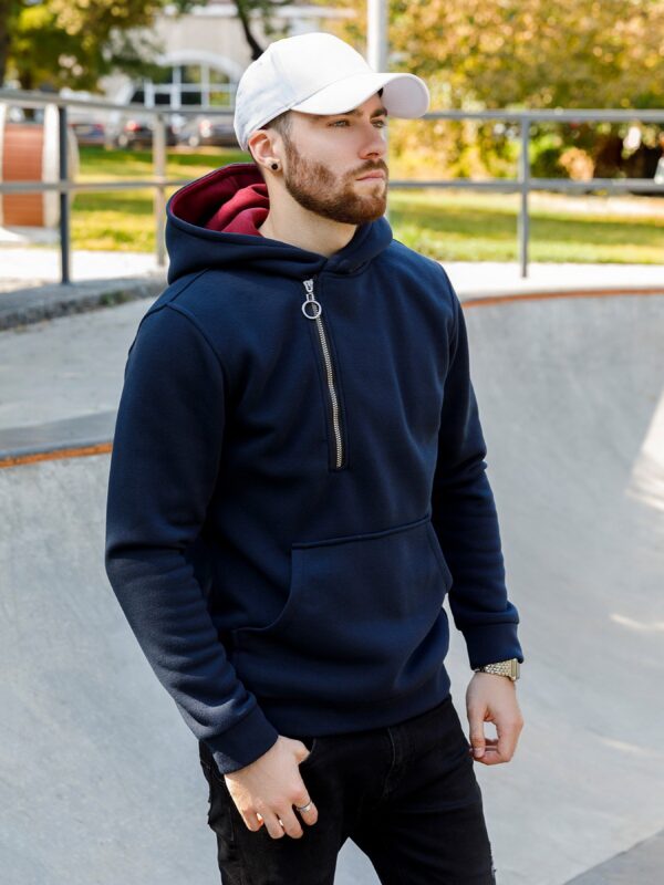 Утепленная флисом трикотажная толстовка декорирована укороченной молнией и принтованной потайной вставкой у горловины. Толстовка с капюшоном и контрастной вставкой. Модель прямого кроя с карманом и длинными рукавами оснащена манжетами. Материал: Трикотаж на флисе