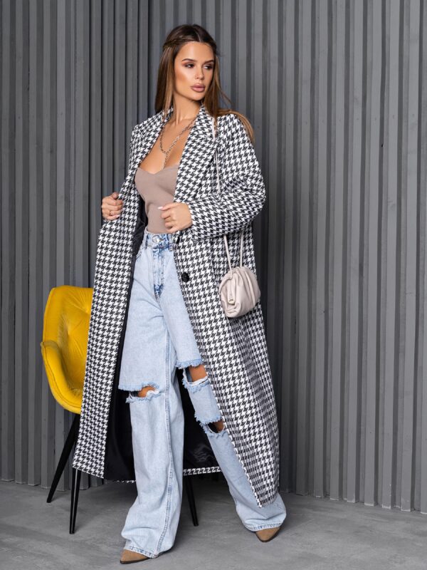 Свободное черно-белое пальто из твида с накладными карманами. Модель с длинными рукавами и воротником оснащена нижним подкладом. Модель на двух пуговицах с макси длиной. Полуобхват: Грудь: S (54), M (56), L (58), XL (60), Талия: S (54), M (56), L (58), XL (60), Бедра: S (54), M (56), L (58), XL (60), Длина изделия – 127, Рукав – 61, Ткань: Низкой эластичности.