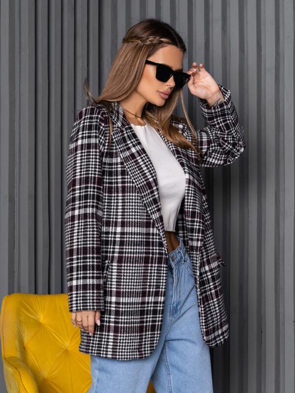 Удлиненный пиджак из шерстяного клетчатого твида. Модель без подкладки с декоративными клапанами и длинными рукавами. Пиджак с потайными плечиками. Полуобхват: Грудь: S (50), M (52), L (54), XL (56), Длина изделия – 74, Рукав – 60, Ткань: Высокой эластичности.