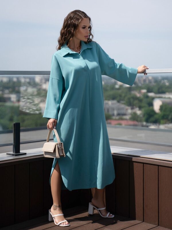Бирюзовое платье-рубашка свободного кроя. Бирюзовое платье-рубашка свободного кроя Состав: 65% лен, 20% хлопок, 15% полиэстер. Материал: Лен. Полуобхват: Грудь: S (62), M (64), L (66), XL (68) Талия: S (62), M (64), L (66), XL (68) Бедра: S (62), M (64), L (66), XL (68)