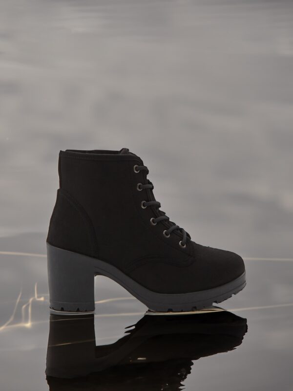 Sinsay – Високі черевики на підборах – чорний – традиційна шнурівка,широкий каблук,круглий носок